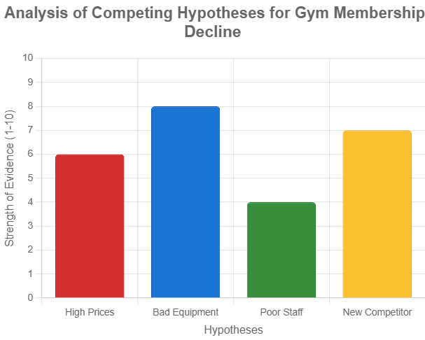 One CIA trick is called Analysis of Competing Hypotheses (ACH). It’s like playing detective with your own brain. List all possible reasons for your problem—say, for the gym: high prices, bad equipment, poor staff, or that shiny new competitor. Then stack up your evidence for and against each one. Which holds up? Which falls apart?
