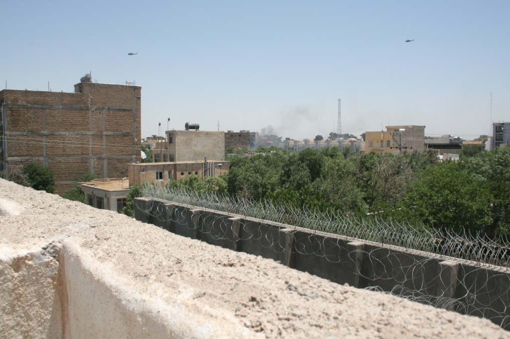 I don’t exactly remember the time of day when the fireworks kicked off. It seems that it was in the morning. We had one team that was out on a move. The rest of us were back at the house doing our own thing, monitoring the radio in the event the guys in town needed help. Things were pretty chill. I had a pair of shorts on and a t-shirt, wearing my “Jap Flaps” (flip-flops). My buddy and I were knee deep into a Call of Duty match when we heard that familiar “BOOOOM!”. The house rocked back and forth like an earthquake and we knew we just got hit. It sounded like the front gate’s heavy steel doors just blew open. We immediately engaged in expletives and dropped our controllers. Game time. We grabbed our kits and rifles along with all the others on compound. We had rehearsals of what to do in this event. My buddy and I ran up the stairs to the rooftop with our TL (Team Leader) while the rest of the guys moved out to their pre-designated locations around the compound. Crouching and moving to our rooftop walls, we were able to see and take relief knowing it was not our compound that had just been hit. However, the Italian PRT across the street was in a bad way. The black smoke and fire bellowed from their front gate. A VBIED (car bomb) had just detonated and opened their compound like a book. We watched as the Taliban insurgents rushed their compound, catching the Italians off guard and taking a serious beating.