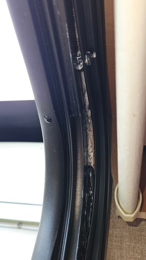 - Inspect for cracks, soft spots, or deteriorated seals around vents and antennas.